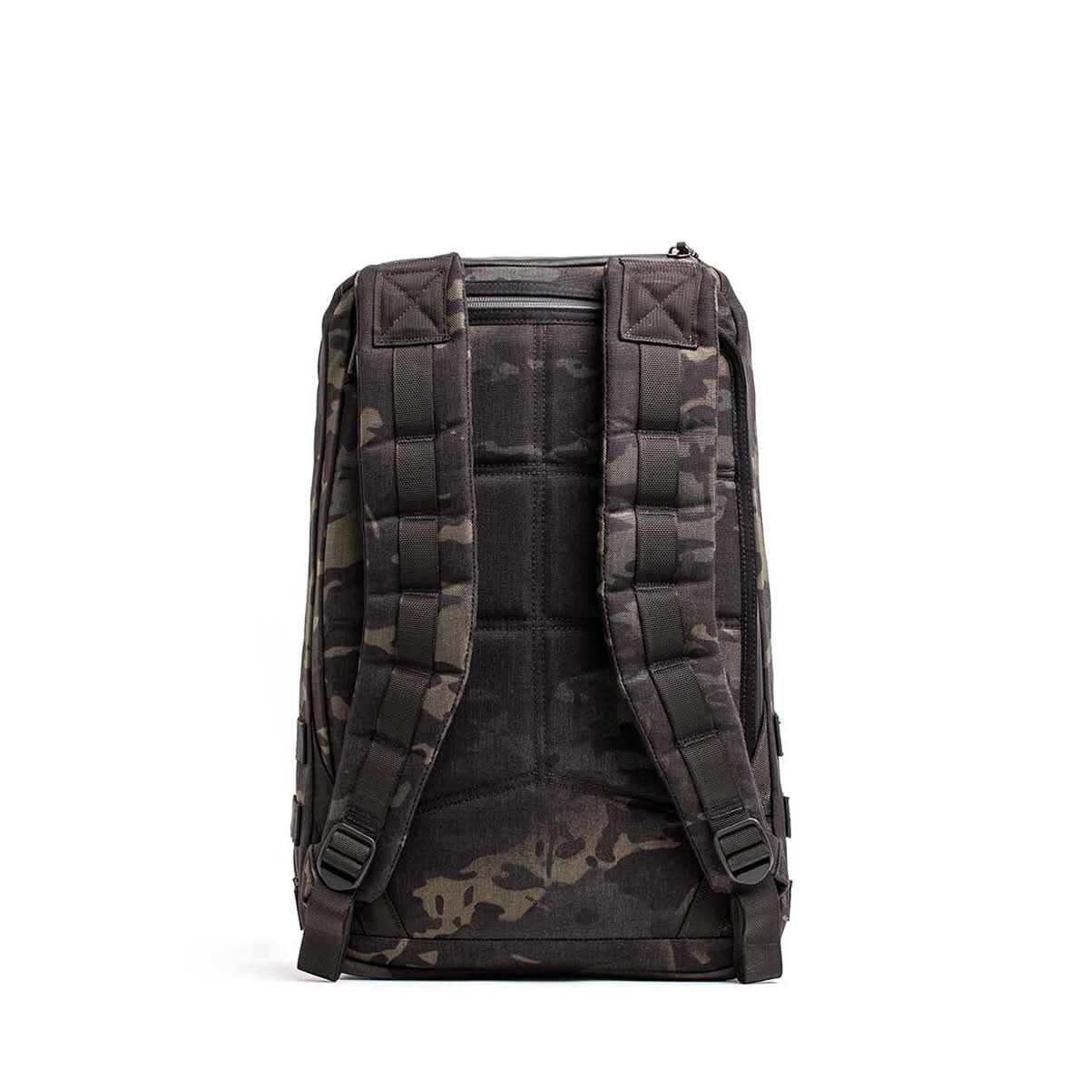 Back view of the GORUCK GR1 USA - Cordura (The Original Ruck) camouflage-patterned backpack, inspired by Special Forces design, featuring padded straps and a quilted back panel.