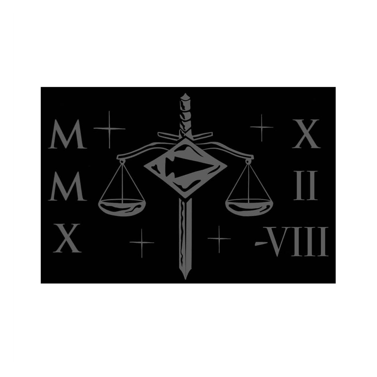 The Patch - GORUCK TRIBE - 2022, featuring a sword with scales against a black backdrop and Roman numerals M, X, II, VIII, is ideal for collectors looking to enhance their exclusive GORUCK Tribe patch collection.
