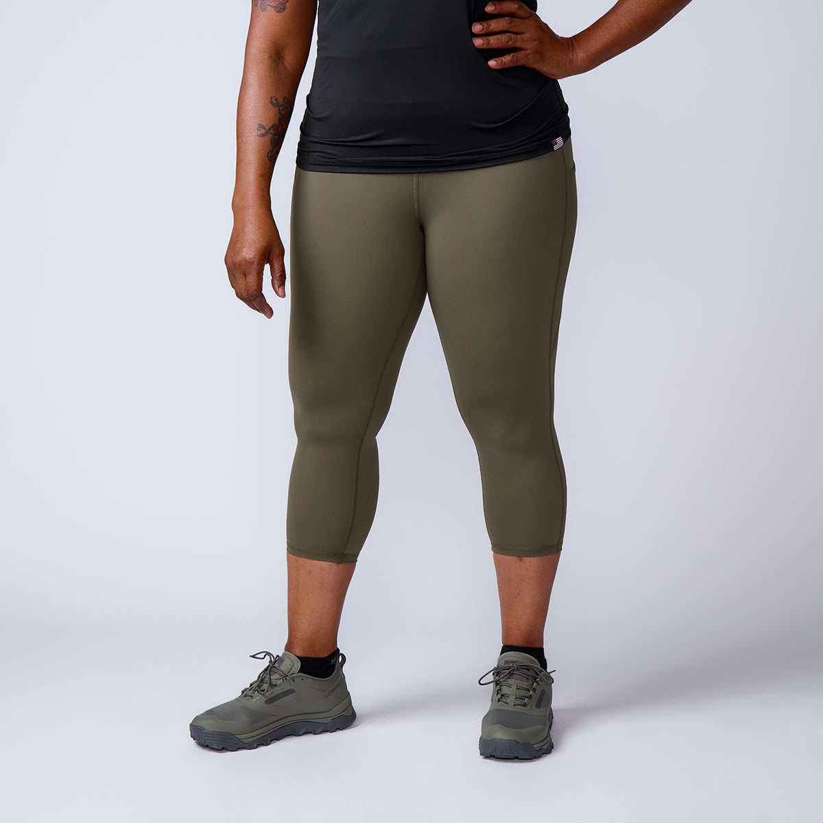 Woman hiking in Cropped Training Leggings Pocket Ranger Green
