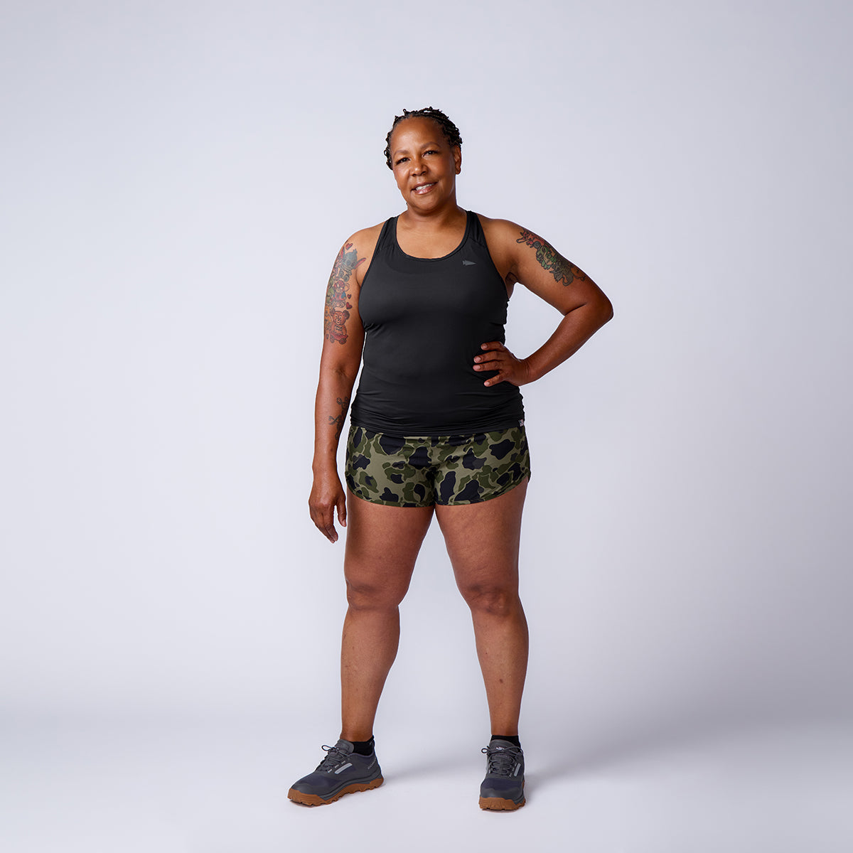 Fit high-waisted and feel soft to the touch but without sacrificing toughness. Waistband features hidden mesh fabric that gives it body and acts like an elastic waistband, aka no more constantly tugging your shorts up.